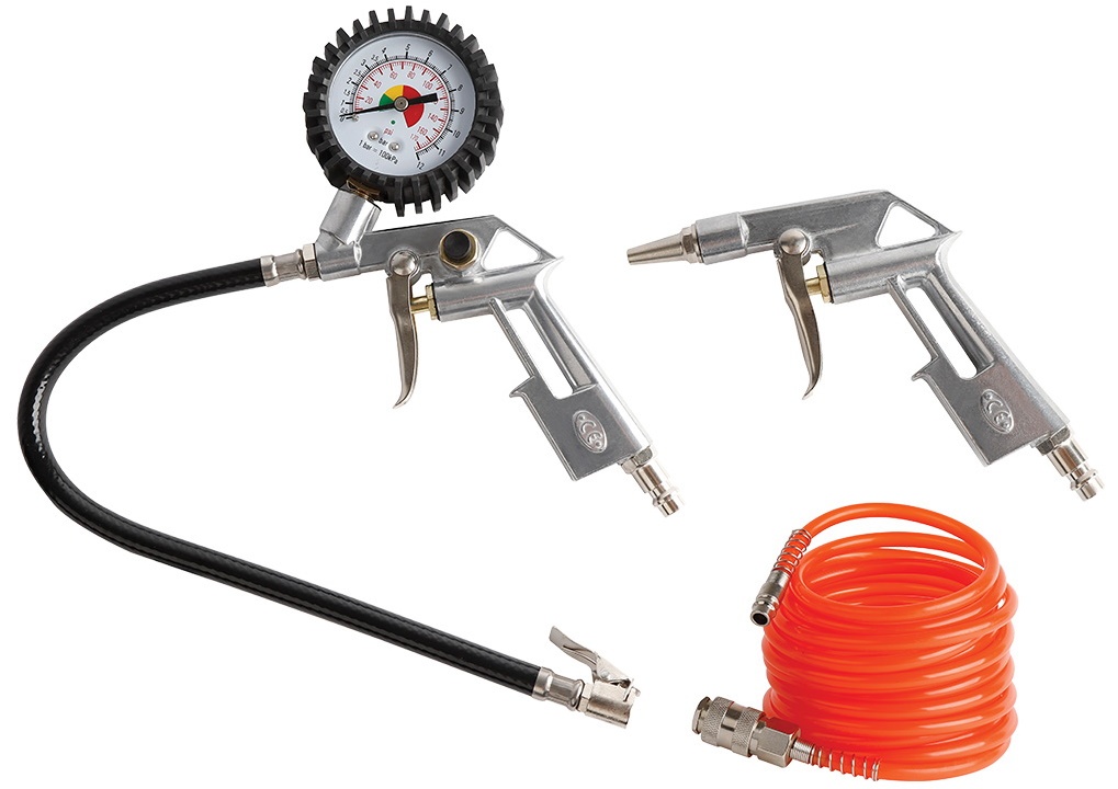 Caracteristici și funcțiisetul include: pistol cu aer, pistol de umflare a roții, echipat cu manometru, furtun spiralat