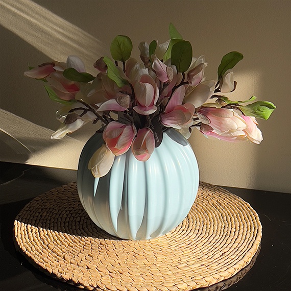 Această vază mică adaugă un accent delicat de stil și rafinament în orice colț al casei, fiind ușor de integrat în diverse stiluri de decor – modern, clasic sau minimalist.
