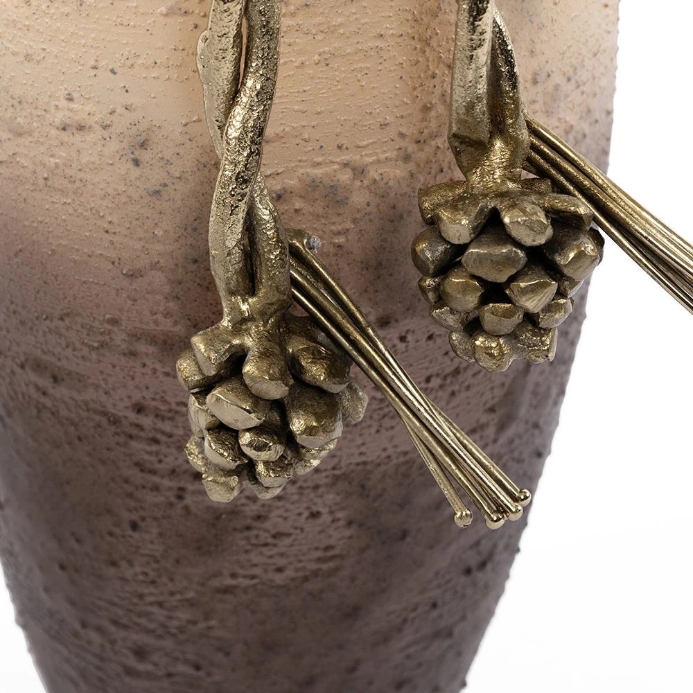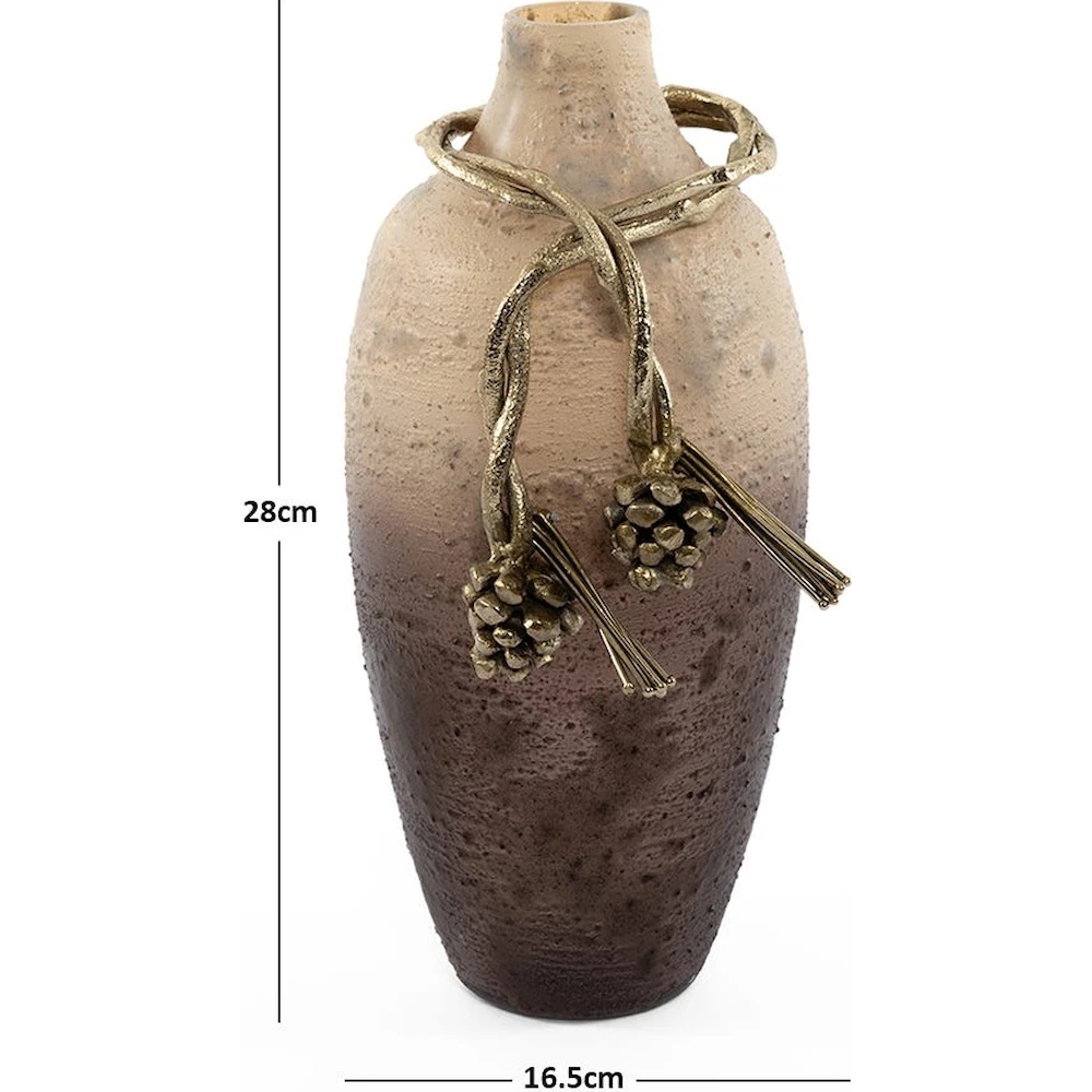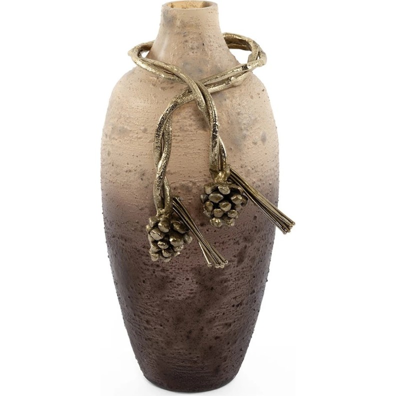 Această vază va deveni o adevărată operă de artă pentru interiorul dumneavoastră, combinând eleganța clasică cu stilul modern. Modelul Morris de la Vista este realizat manual și se remarcă prin forma sa delicată, suprafața texturată și designul bicolor, emanând o rafinată luxurie. Nuantele calde de bronz și suprafața metalică lustruită reflectă elegant lumina, creând o atmosferă sofisticată. Accentele mate aurii sub formă de ghinde conferă vazei un farmec aparte, transformând-o într-un obiect decorativ impresionant pe cont propriu sau într-un complement spectaculos pentru aranjamente florale. Această creație reflectă angajamentul pentru calitate și estetică, combinând luxul, eleganța și expresivitatea artistică.