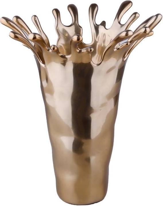 Vaza decorativă Star Dekor EIC029 este o piesă elegantă de design interior, concepută pentru a completa cu stil amenajările casei tale. Realizată cu un finisaj metalic în nuanță aurie, această vază adaugă un accent vizual rafinat în living, hol sau dining și devine un detaliu estetic deosebit pentru orice spațiu. Poate fi utilizată atât pentru aranjamente florale naturale sau artificiale, cât și ca un obiect decorativ independent, reflectând gustul pentru eleganță și atenția la detalii