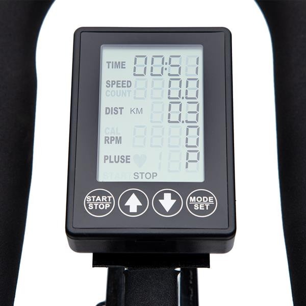 Rezistenta mecanica asigura sarcini maxime. Butonul de reglare a rezistenței este, de asemenea, o frână. Pur și simplu apăsați-l pentru a opri volantul de 15 kg.