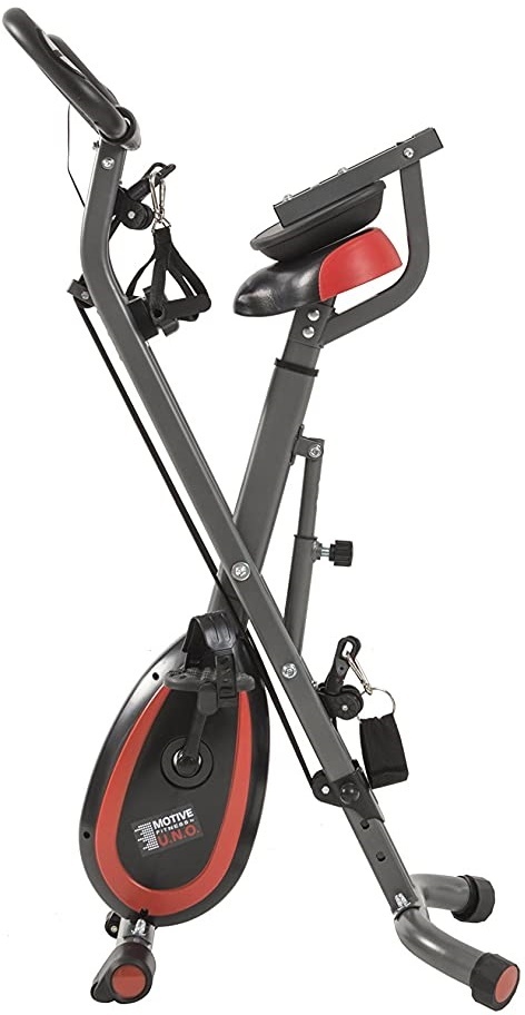 După antrenament, X Bike se pliază pentru a economisi spațiu.