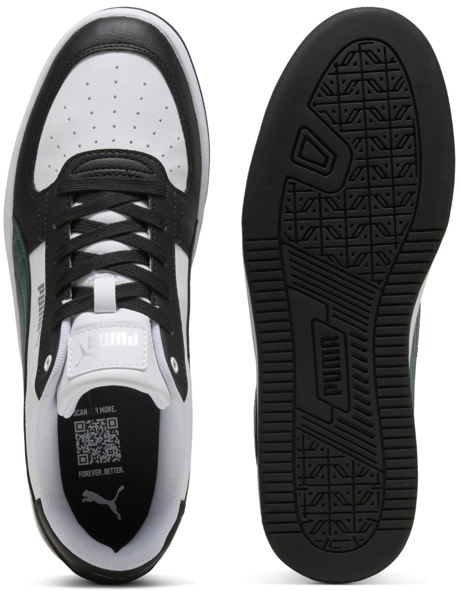 Logo-urile PUMA sunt prezente discret, dar elegant, pe partea superioară, pe călcâi și pe eticheta limbii, subliniind identitatea sportivă.