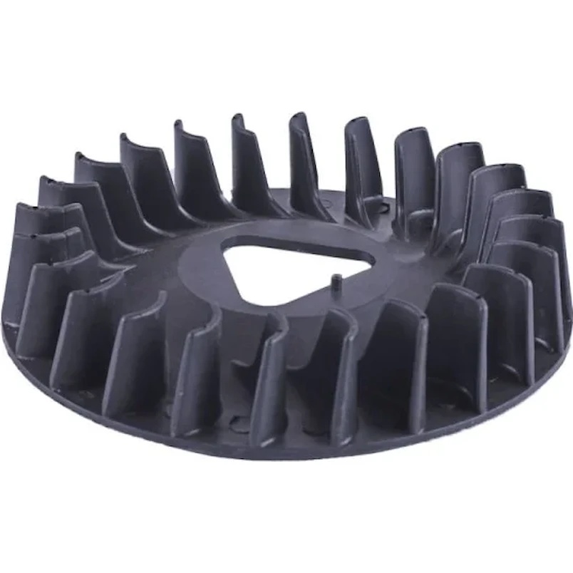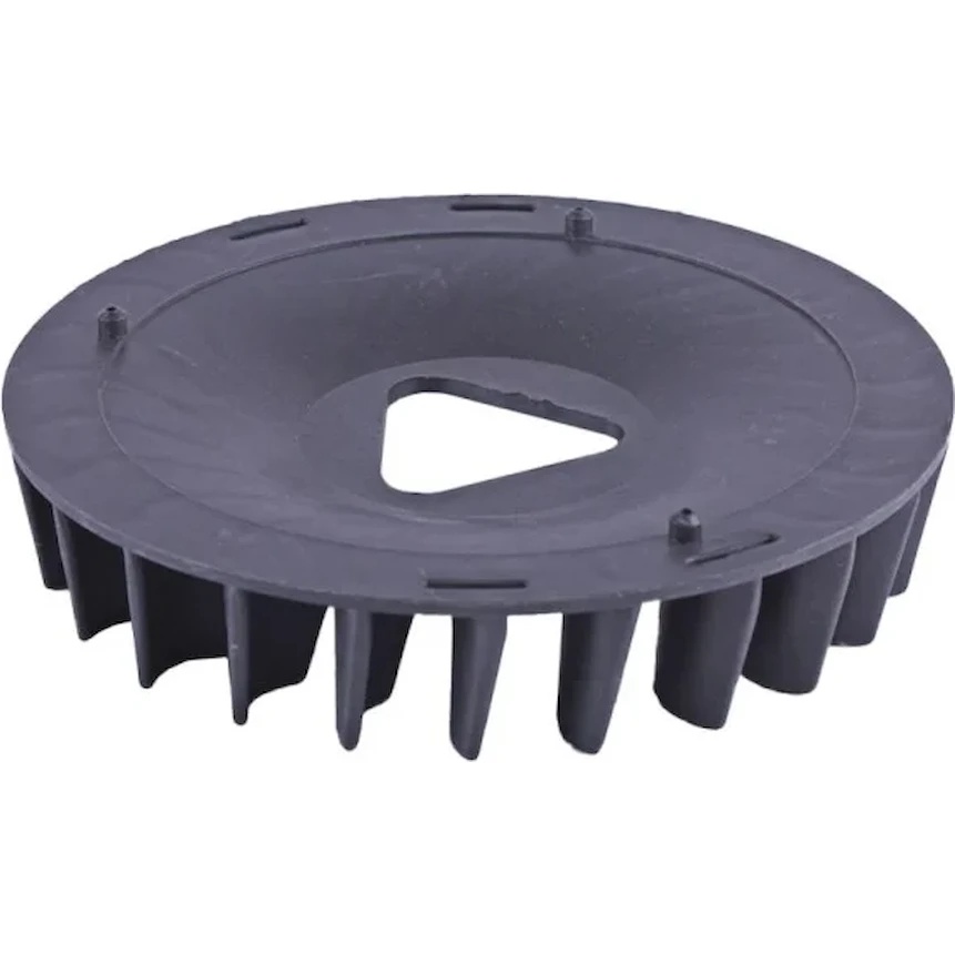 Ventilatorul TT AGRO MOTO pentru motorul pe benzină 188F al generatorului GN 5-6 KW se montează pe volanta motorului printr-un suport al starterului manual și se fixează cu un șurub al arborelui cotit. Partea este concepută pentru unități de putere cu arborele vertical și rotație în sensul acelor de ceasornic. Ventilatorul este fabricat din plastic rezistent la temperaturi ridicate și reprezintă un disc cu palete integrate, care creează un flux de aer direcționat stabil. În timpul funcționării, acesta se rotește împreună cu volanta și asigură răcirea forțată a motorului, prevenind supraîncălzirea în condiții de sarcină prelungită. O caracteristică distinctivă a modelului este echilibrarea precisă și rezistența la turații mari, ceea ce garantează o răcire eficientă și compatibilitate cu structura standard a motoarelor 188F. Avantajele includ dispersia fiabilă a căldurii, creșterea duratei de viață a motorului și menținerea stabilității funcționării generatorului sub sarcină. Dacă ventilatorul nu este înlocuit la timp, răcirea este afectată, motorul se supraîncălzește, pierde putere, pot apărea daune la grupul cilindru-piston și se reduce durata de viață generală a unității de putere.