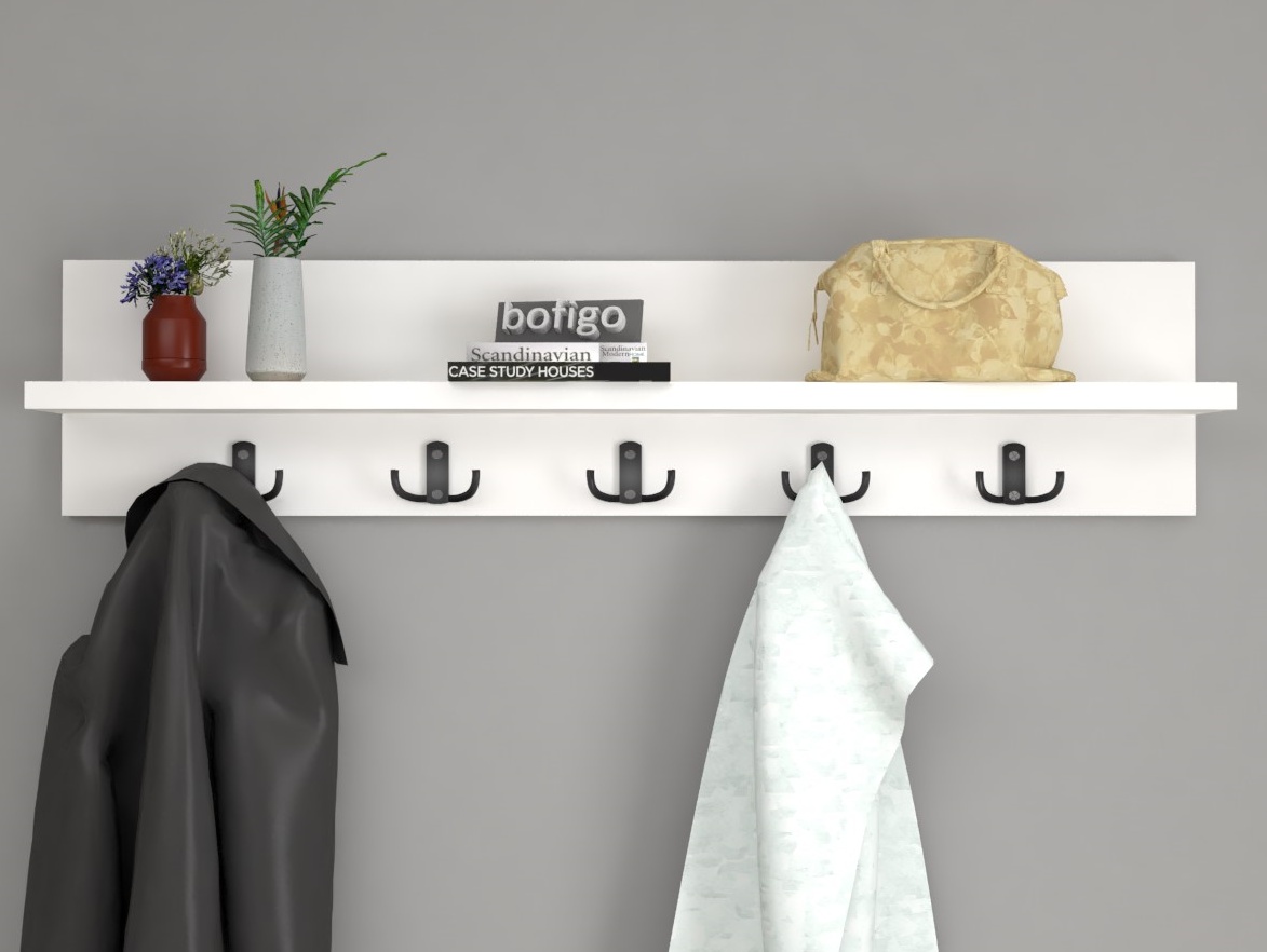 Cuierul de perete Bofigo 21-12-01 este o soluție compactă și practică pentru depozitarea hainelor și accesoriilor în antreu sau alte încăperi. Realizat din PAL durabil, acest cuier se montează pe perete, ajutând la organizarea inteligentă a spațiului și menținerea ordinii. Cu o lățime de aproximativ 80 cm, este potrivit pentru agățarea jachetelor, paltoanelor, genților și altor obiecte. Designul simplu și elegant face ca acest cuier să se integreze cu ușurință în orice stil de interior, oferind un punct funcțional și ordonat pentru haine.