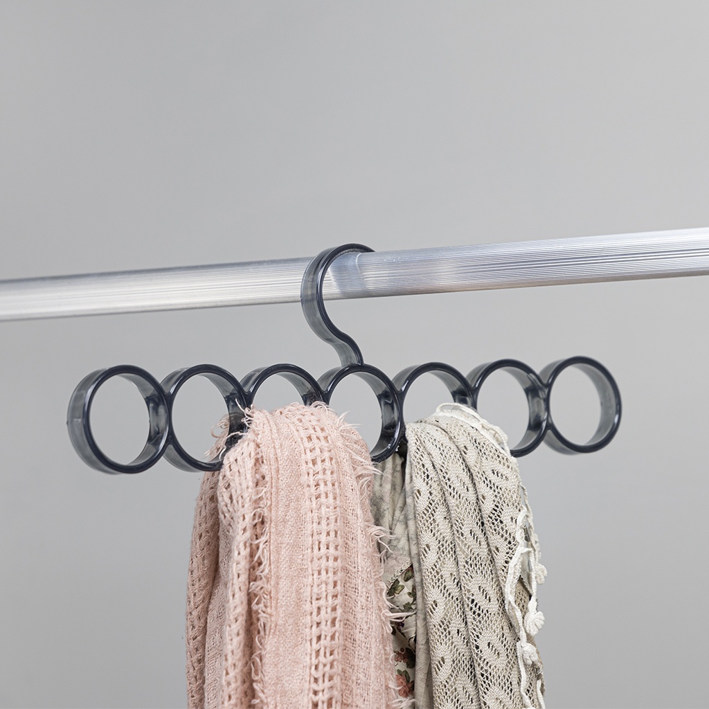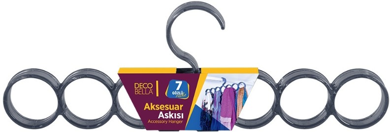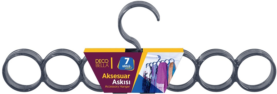 Umeraș DecoBella 50821 colorat pentru accesorii este conceput special pentru organizarea eșarfelor, curelelor sau alte accesorii subțiri. Dispune de mai multe inele individuale prin care poți introduce eșarfele, păstrându-le ordonate și fără cute. Realizat din material rezistent 100 % polistiren, umerașul este durabil și ușor de utilizat.