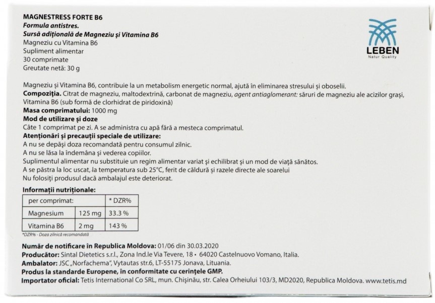 Vitamine Leben Magnestress Forte B6 30tab