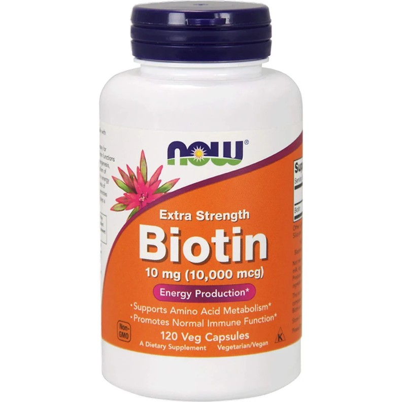NOW Biotin 120 cap — este un supliment alimentar de înaltă calitate cu biotină (vitamina B7), conceput pentru a susține sănătatea pielii, părului și unghiilor, precum și metabolismul normal. Biotina participă la metabolizarea carbohidraților, grăsimilor și proteinelor, ajutând organismul să transforme eficient alimentele în energie.