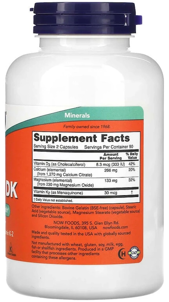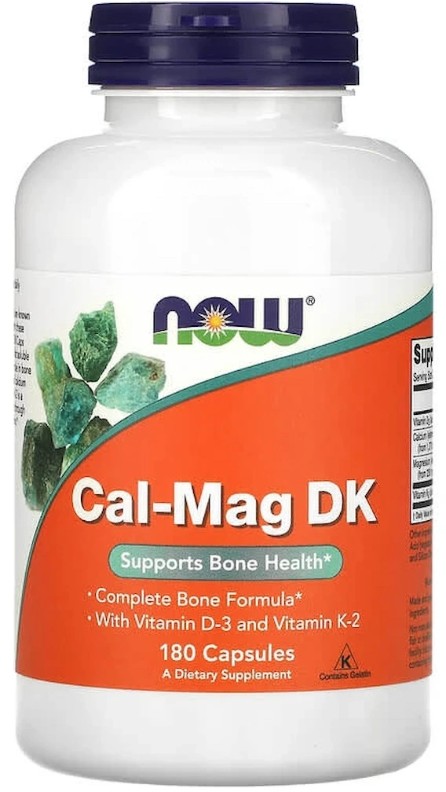Împreună cu aceste două minerale importante, NOW® Cal-Mag DK Caps oferă și vitaminele D și K, care joacă un rol cheie în metabolismul osos.