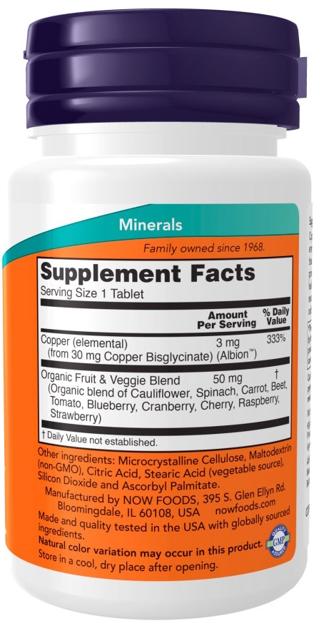 Supliment alimentar NOW Copper Glycinate 3mg 120tab