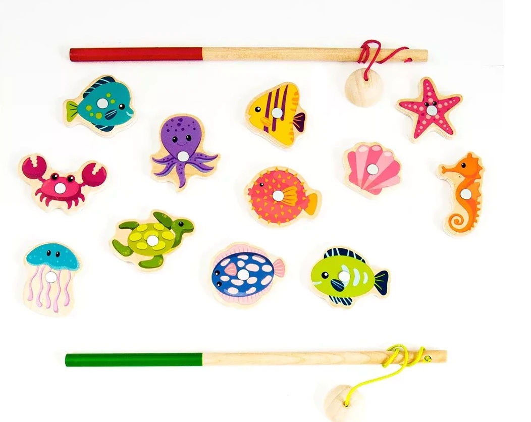 Intra in set12 magneți, 2 undițe de pescuit, loc de joaca