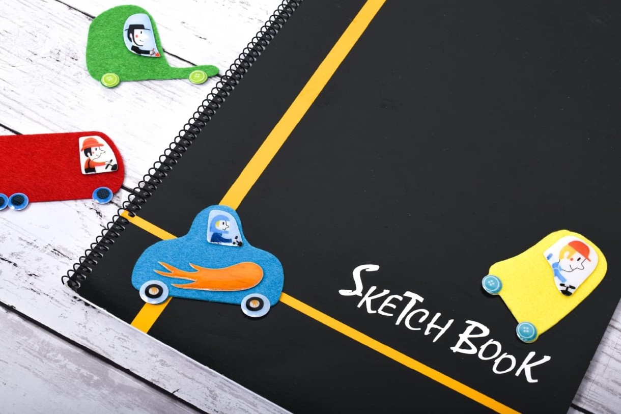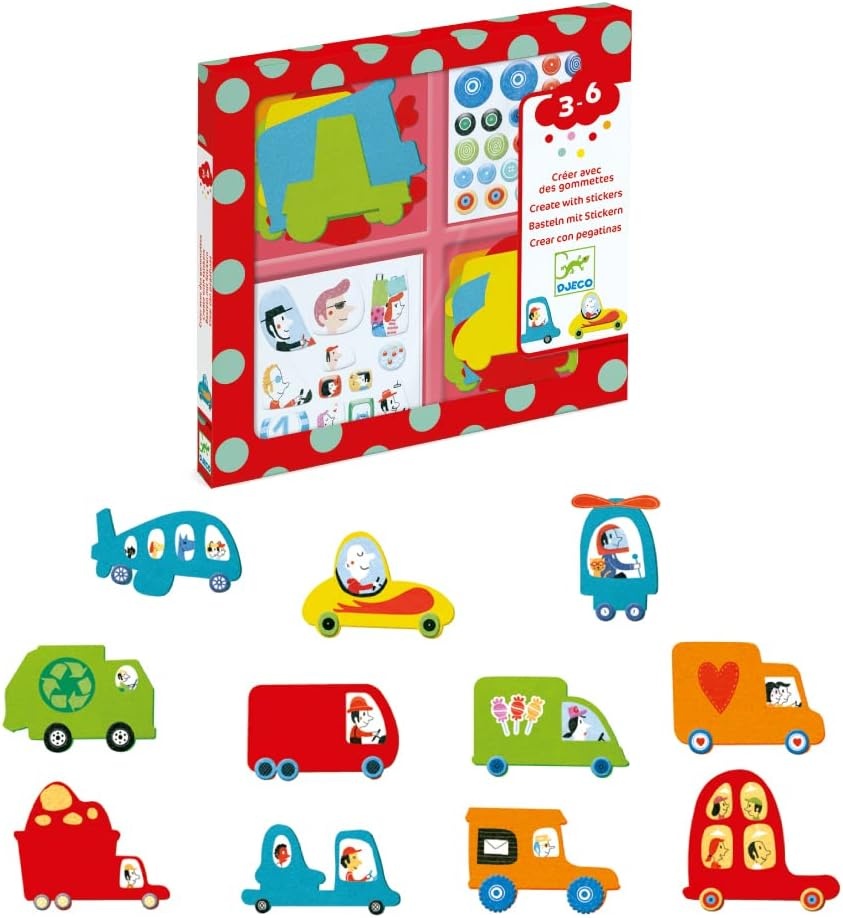 Intra in set24 de forme de mașini din pâslă, autocolante cu șoferi, roți și accesorii cu care să decorați mașinile