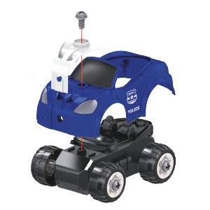 Transformă joaca într-o experiență captivantă cu această mașină de poliție RC, pe care copilul o poate asamblă pas cu pas folosind o șurubelniță electrică specială. După asamblare, pornește motorul, activează luminile intermitente și sunetele realiste, apoi controlează vehiculul cu ajutorul telecomenzii – care este, de fapt, șurubelnița transformată ingenios.