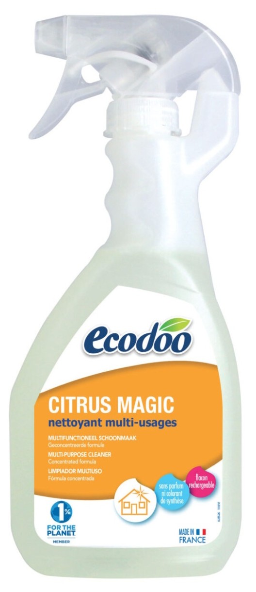 Spray‑ul ecologic Ecodoo Citrus Eco Magic 500 ml este soluția universală pentru curățenie și igienă în casă. Curăță, degresează, igienizează și dezodorizează, oferind o curățare eficientă și sigură. Este potrivit pentru aparate electrocasnice, coșuri de gunoi, chiuvete, suprafețe din plastic și alte tipuri de suprafețe. Formula nu conține coloranți, conservanți sintetici, amoniac, sodă caustică sau acizi agresivi- blândă pentru locuință, dar eficientă în curățare. Cu pulverizatorul comod, utilizarea este simplă: pulverizezi, ștergi-și suprafața devine curată, proaspătă și sigură.