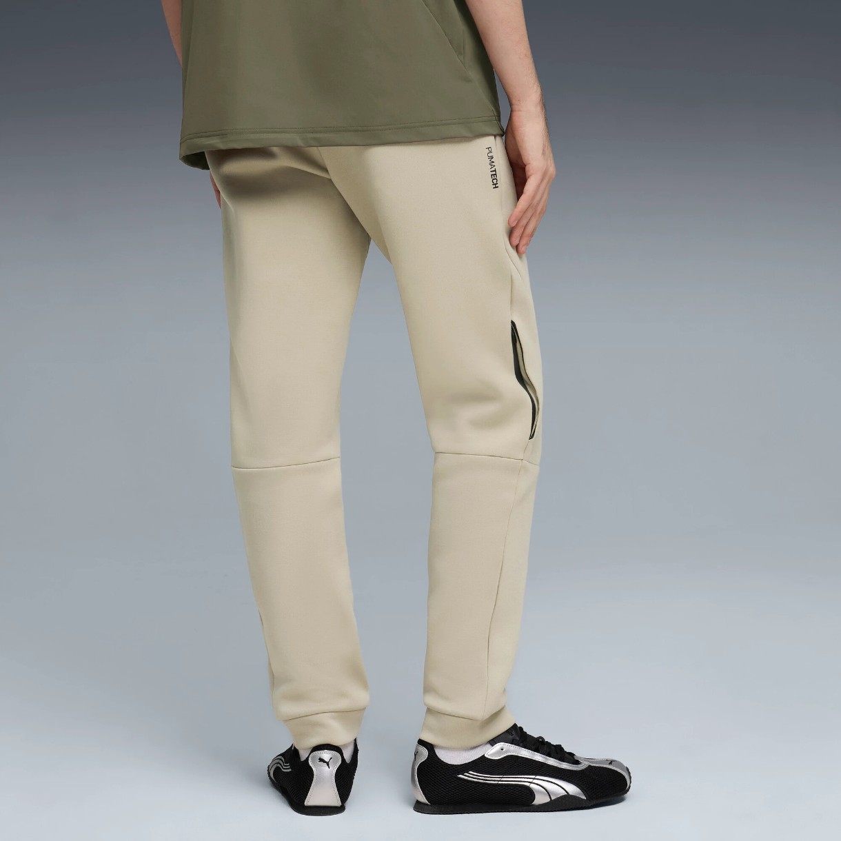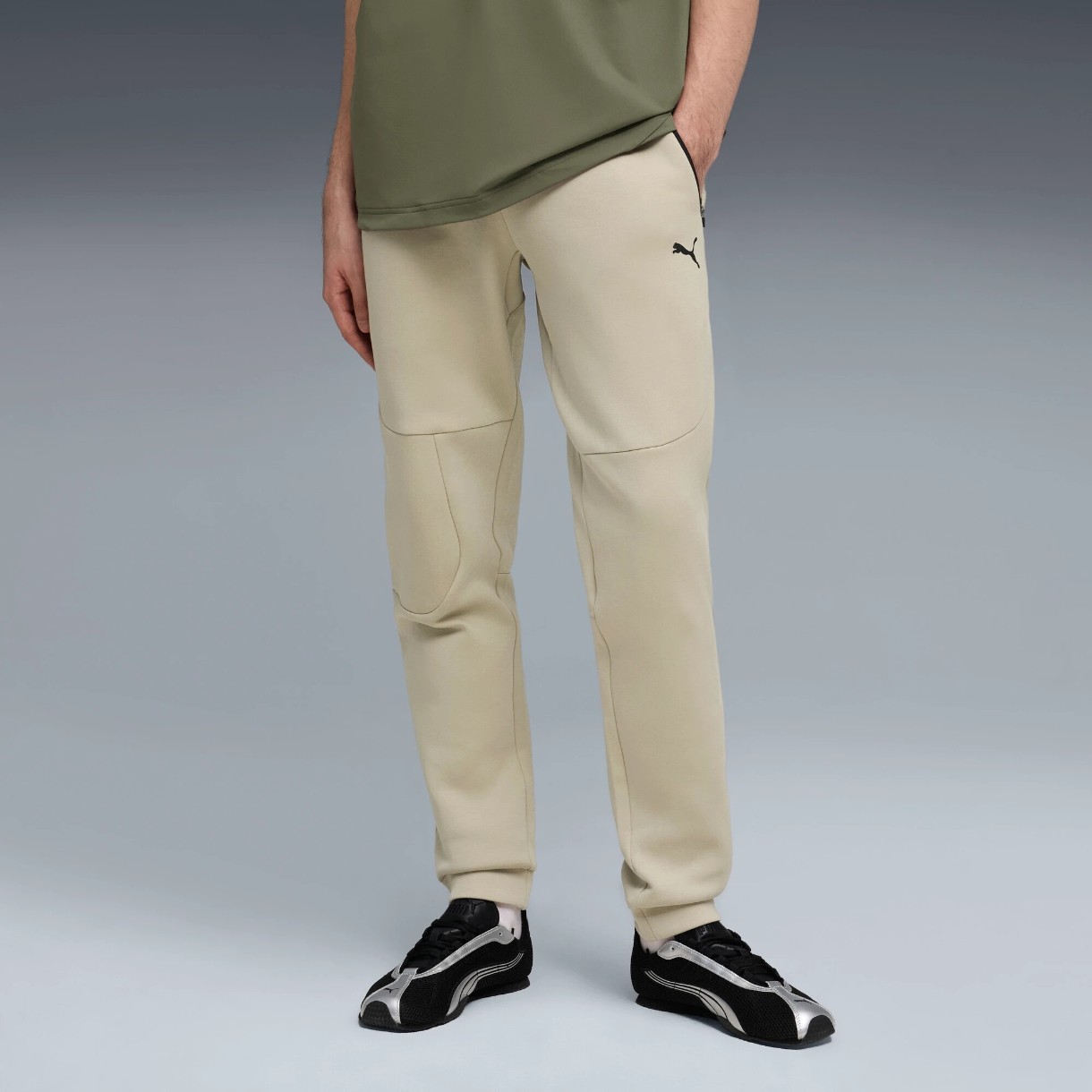 Croiala conică spre bază, talia elastică cu cordon de ajustare și manșetele creează o potrivire optimă, iar buzunarele laterale cu fermoar păstrează obiectele în siguranță. Liniile de croi ergonomice și logo-ul PUMA Cat reflectorizant pe coapsă completează designul.