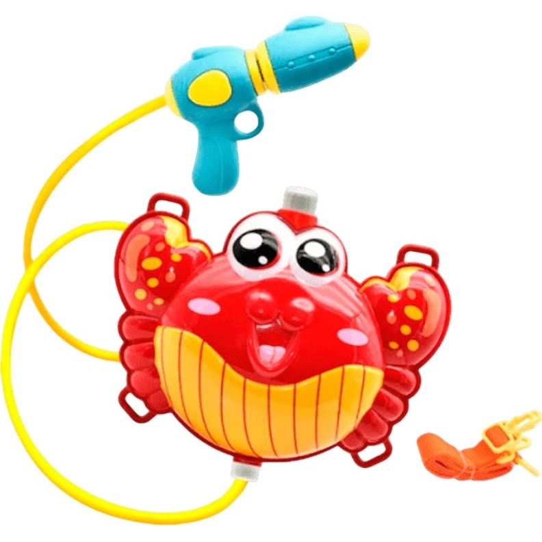 Un pistol cu apă colorat combinat cu un recipient de apă spațios care seamănă cu un rucsac.