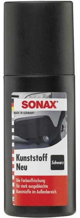 Produsul pentru reîmprospătarea culorii negre a elementelor din plastic ale automobilului SONAX Plastic New Black (409100) conține o vopsea pe bază de apă cu aderență excelentă. Înnăgritorul pentru plastic redă intensitatea culorii negre a plasticului decolorat de pe caroserie, bare de protecție și ornamente. Aplicare ușoară datorită aplicatorului integrat.