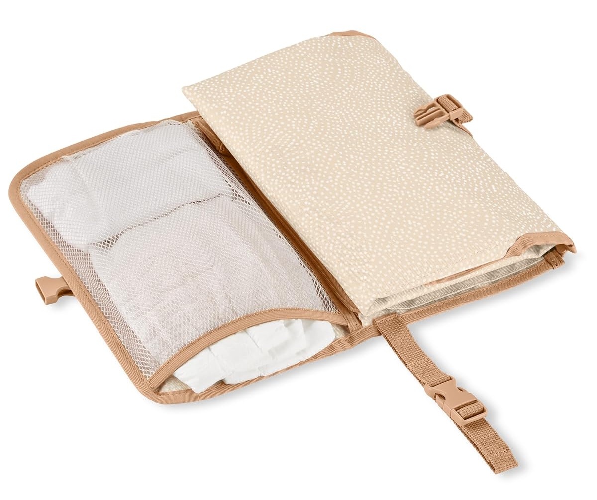 Instrumentul perfect pentru schimbarea scutecelor facilitează schimbarea bebelușului, indiferent unde te afli. Geanta noastră ultra-convenabilă dispune de o saltea de schimbat ușor de curățat, cu fermoar și un suport translucid pentru șervețele, pentru schimbări rapide. Un buzunar mare din plasă poate ține până la patru scutece, plus creme și alte articole esențiale, iar un buzunar frontal cu fermoar este perfect pentru chei, telefon mobil sau alte obiecte personale. Pur și simplu puneți scutecul Pronto în geantă, prindeți-l la încheietura mâinii sau atașați-l la cărucior și gata!