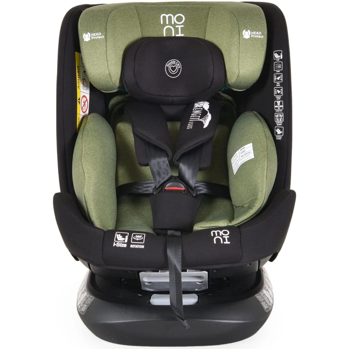 O calatorie sigura este o noua etapa in dezvoltarea copilului. Scaunul auto Moni Serengeti este perfect pregatit pentru a satisface toate asteptarile unui pasager mic. Scaun auto pentru grupa 0/1/2/3 (0-36kg).4 pozitii inclinate ale spatarului, Reglare a spatarului cu o singura mana Inclinare de pana la 165 *. pentru o pozitie de somn oonfortabila Scaunul auto se poate utiliza atat cu fata, cat si cu spatele la sensul de mers . Ofera protectie superioara copiilor in caz de impact lateral . Scaunul auto este destinat utilizarii in autoturisme dotate cu centuri de siguranta cu prindere in 3 puncte si prevazute cu sistem isofix