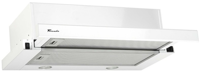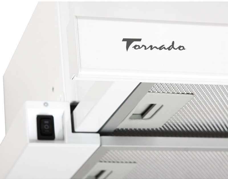 Hota telescopică incorporabilă Tornado Storm 700 cu lățimea de 50 cm. Linia îngustă a fațadei la hotă armonios și modern se încadrează în interiorul general al oricărei bucătării moderne, ascunzând sub aceasta un dispozitiv puternic și sigur. Prin tragerea ecranului către dvs., aceasta poate fi transformată într-o hotă productivă, care va îndepărta cu ușurință toate mirosurile din bucătărie. Hota este echipată cu un motor puternic și silențios, cu trei viteze de rotație, cu o turbină cu capacitatea de 700 m3 / h, cu lămpi LED luminoase și economice, precum și cu un control mecanic sigur. Are clasa C de eficiență energetică. Hota este echipată cu un filtru anti-grăsimi din aluminiu cu cinci straturi, opțional poate fi echipată cu două filtre de carbon FW-E14 pentru regimul de recirculare. Hota este potrivită pentru încăperi de până la 15 m2 cu diametru la țeavă de 150 mm.