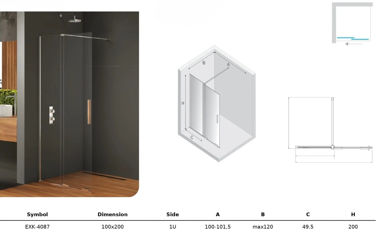 Ușă de duș New Trendy Smart EXK-4087 100x200x8mm (19521)