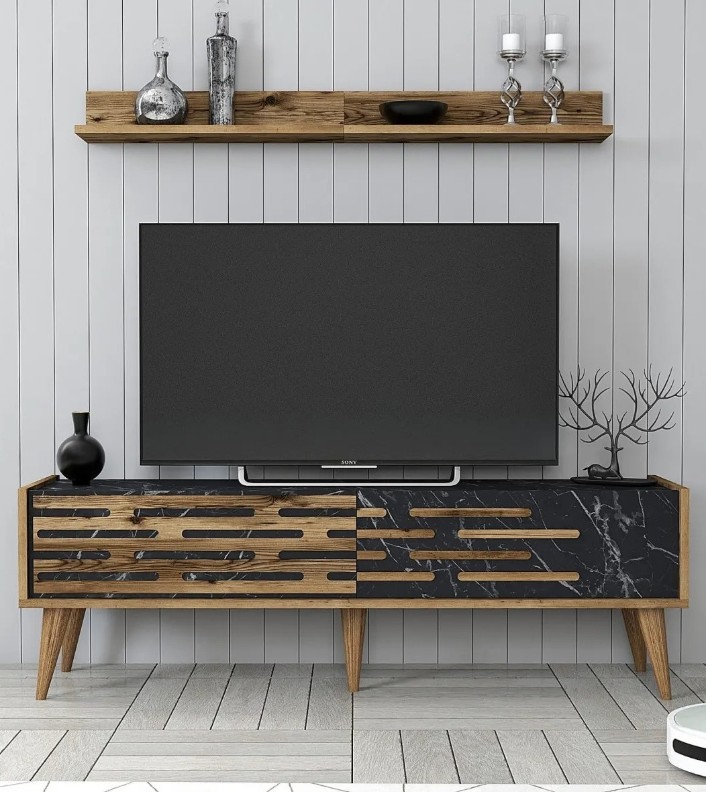 Comodă TV Trendy Valensiya 140 Walnut/Black Marble 140x45x35cm GTR000081