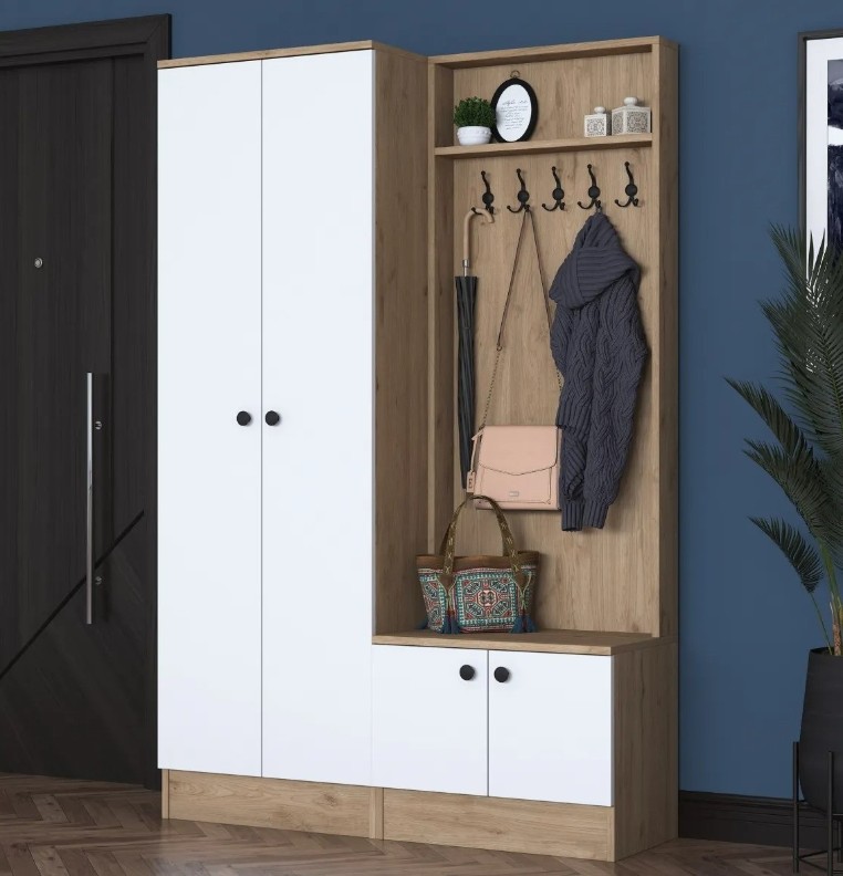 Dezordinea din intrare devine istorie. Suportul pentru hol este echipat cu numeroase rafturi și compartimente suplimentare, oferind spațiu convenabil pentru organizarea obiectelor. Cheile, portofelele, pălăriile și eșarfele își vor găsi locul potrivit.