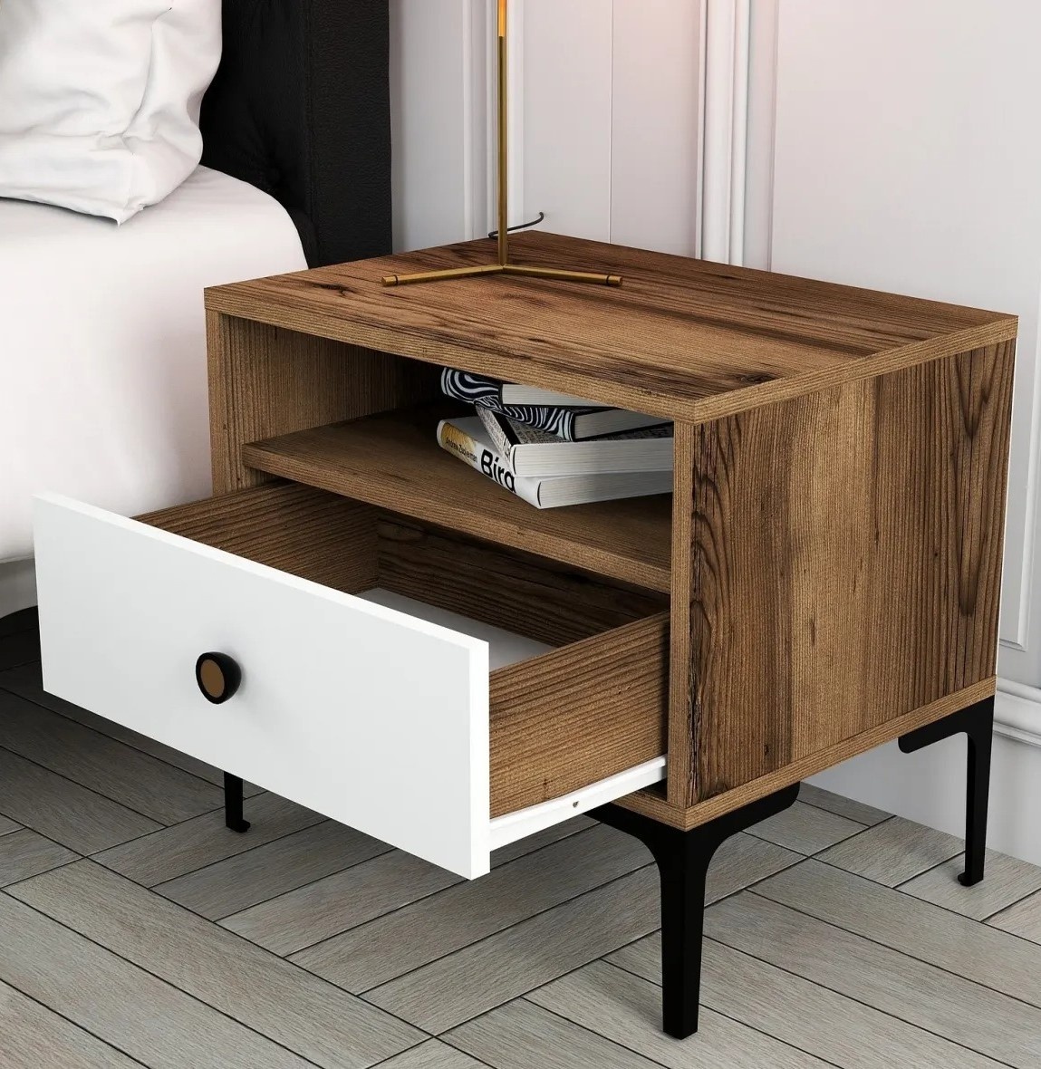 Noptieră Trendy Lizbon 530 Walnut/White/Black 50.8x56x40cm GTR001517