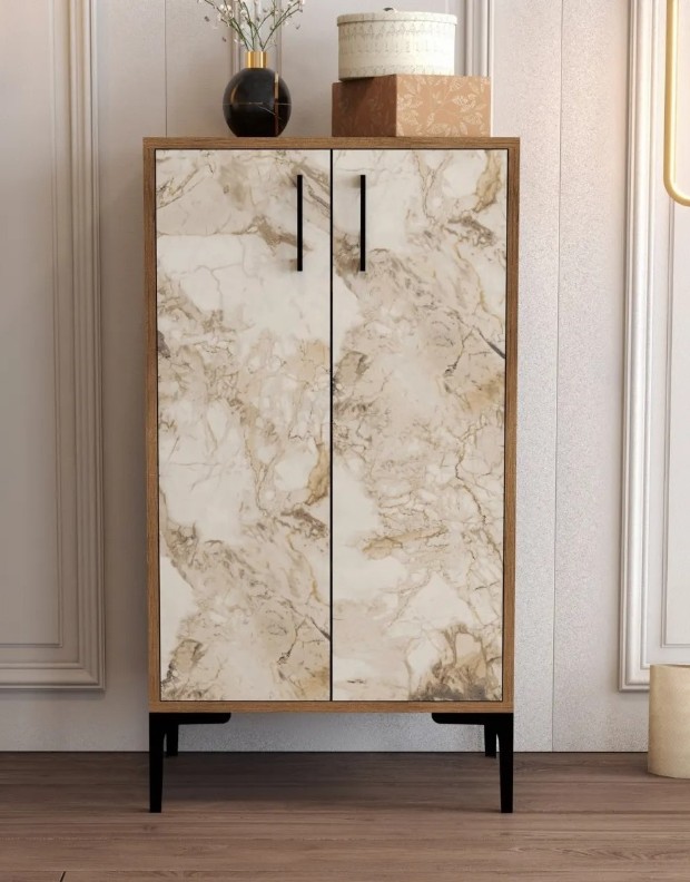 Rafturi pentru pantofi Trendy Prag Walnut/White Marble 111x60x35cm GTR000961