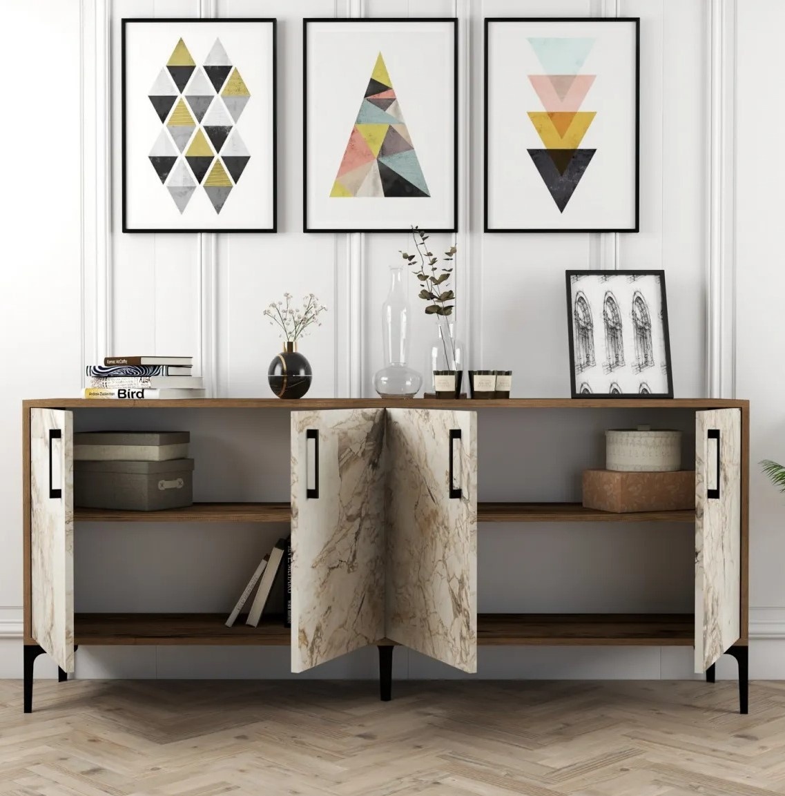 Consola industrială poate fi fixată cu ușurință pe perete, adăugând stabilitate și creând un efect de plutire care adaugă o notă de eleganță camerei dvs. Acest design inovator maximizează spațiul și creează un punct focal uimitor din punct de vedere vizual.