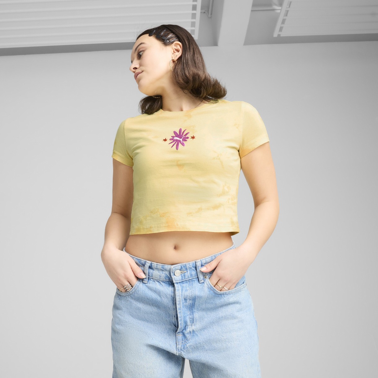 Tricou de dame Puma Wardrobe Ess Floral Pack Washed Graphic Baby Tee Sunny Yellow, s.XL