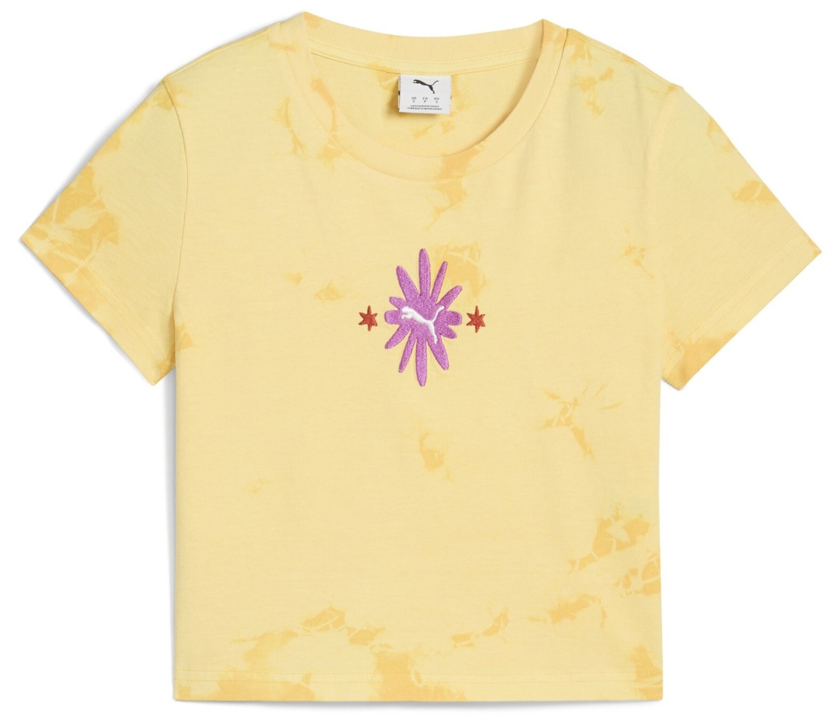 Tricou de dame Puma Wardrobe Ess Floral Pack Washed Graphic Baby Tee Sunny Yellow, s.XS