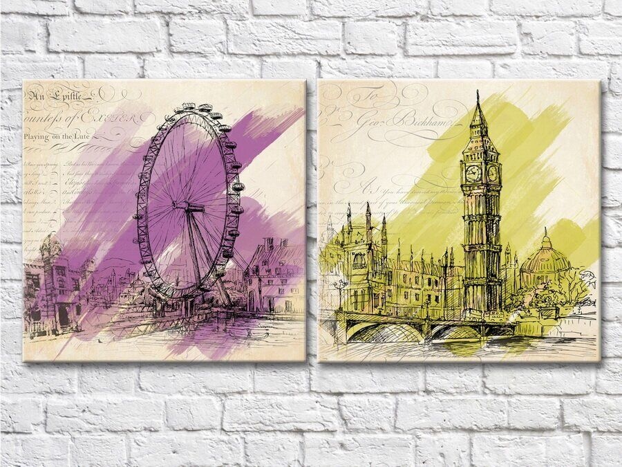 Pictură ArtPoster Architectural sketch watercolor Big Ben The London Eye (2495230)