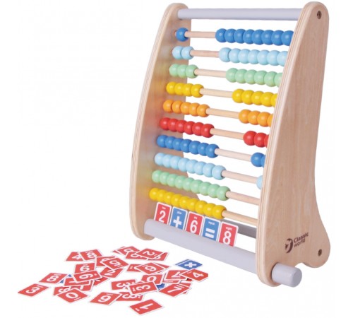 Cu acest abacus din lemn, copiii pot învăța despre matematica simplă în timp ce se distrează. Ei pot muta bilele colorate și pot utiliza cărți pentru a-i ajuta să rezolve probleme de matematică. Aceste scoruri vor ajuta la îmbunătățirea recunoașterii culorilor, coordonarea mână-ochi și la dezvoltarea abilităților de gândire logică. Jucăria este fabricată din lemn natural, pentru producerea ei se folosesc vopsele sigure.