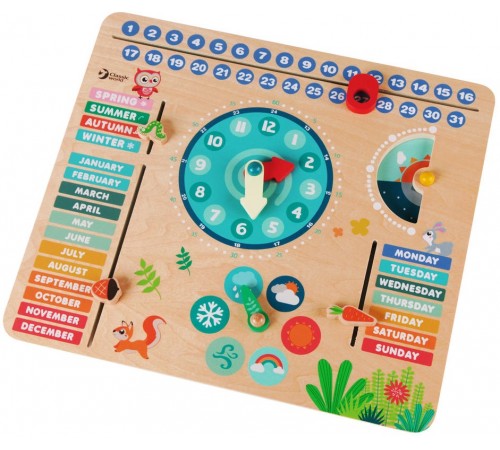 Acest calendar și eas din lemn colorat care să învețe la un nivel cu totul nou! Culorile strălucitoare vor atrage atenția copilului tău. Acest calendar este o jucărie multifuncțională în care copilul tău se va strădui să afle ora, lunile, zilele, sezonul și vremea! Jucăria este fabricată din lemn natural, pentru producerea ei se folosesc vopsele sigure.