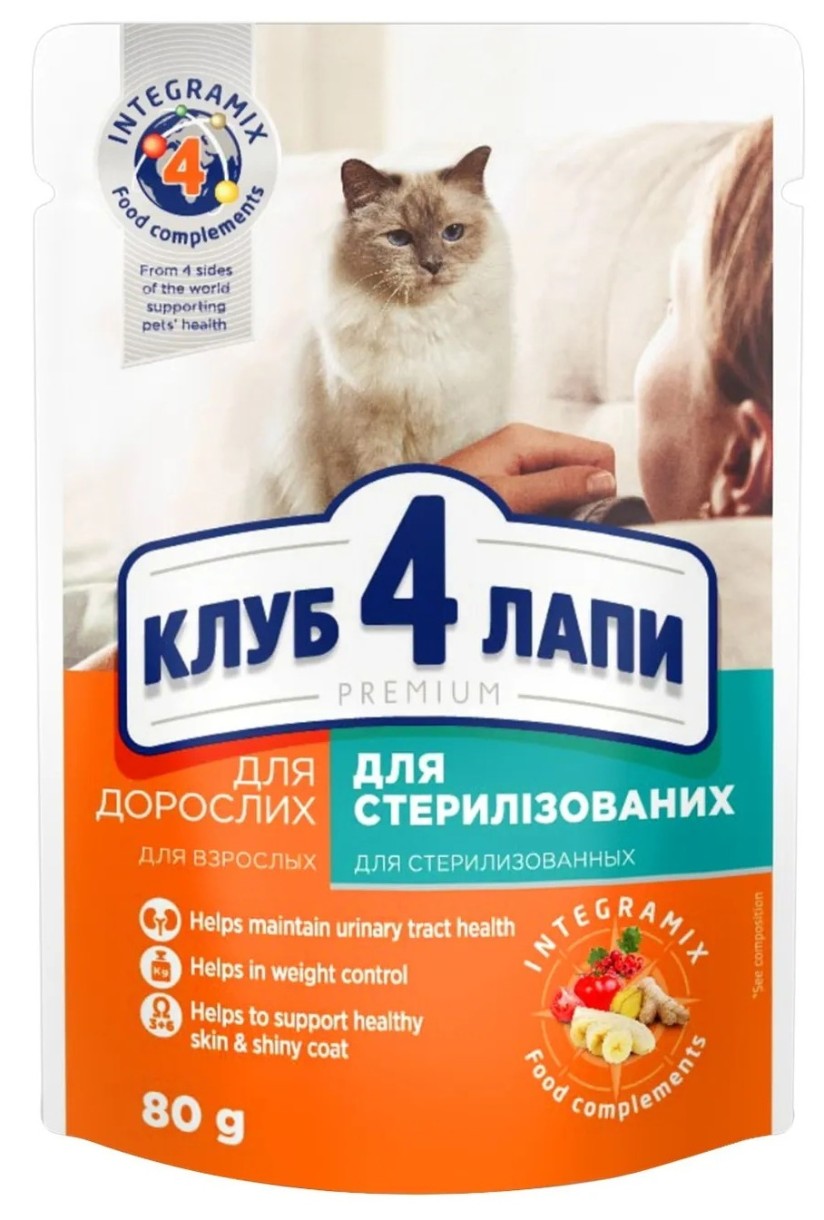 Hrană umedă pentru pisici Club 4 Paws Adult Cats Sterilised Beef 80g