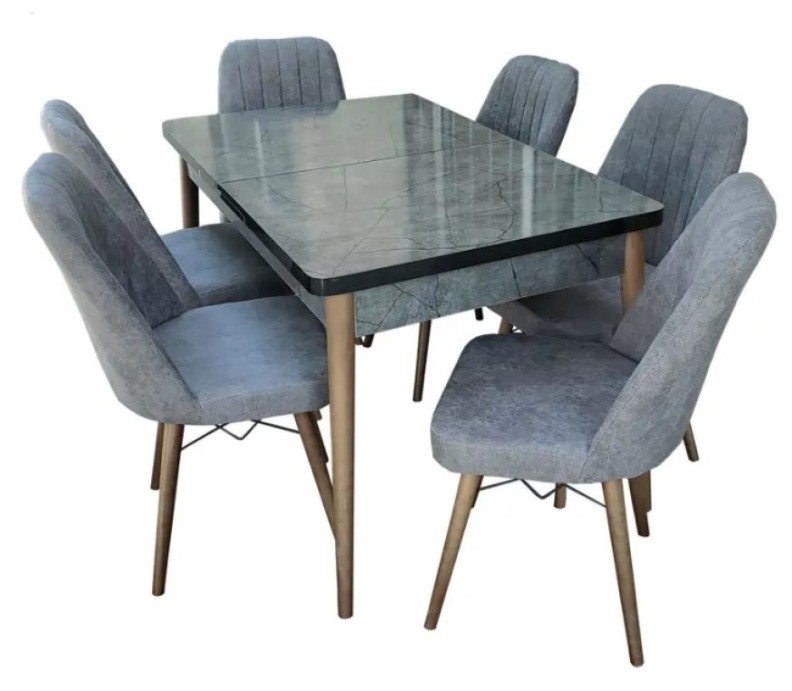 Set masă și scaune Magnusplus Set MDF 1 Gray Butterfly Aris Antrasit + 6 Chairs Gold Istinye 18 imaginea #1 — magazin online Desire.md