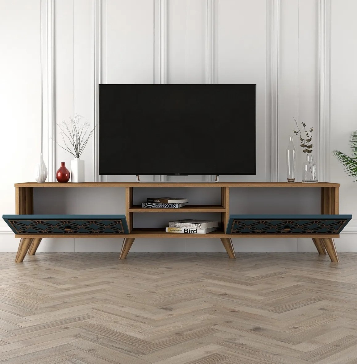 Comodă TV Trendy Clasa Walnut/Blue 180x44x35cm GTR000087