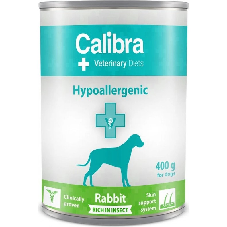 Hrană umedă pentru câini Calibra Veterinary Diets Hypoallergenic Rabbit&Insect 400g