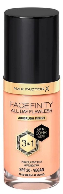 Fond de ten pentru față Max Factor Face Finity All Day Flawless 3in1 Foundation 45 Warm Almond
