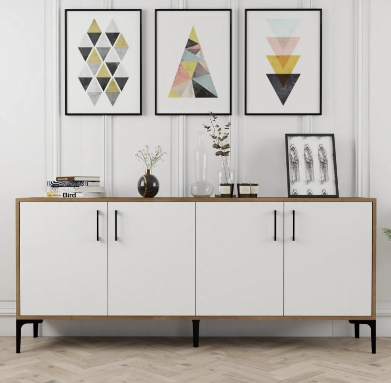 Îmbrățișează frumusețea consolei industriale, concepută pentru a-ți înălța spațiul de locuit și a crea o impresie de durată. Confecționată din panouri de particule de lemn acoperite cu 100% melamină, această consolă se mândrește cu durabilitate și longevitate, asigurându-se că va fi o piesă prețuită pentru mulți ani de acum încolo.