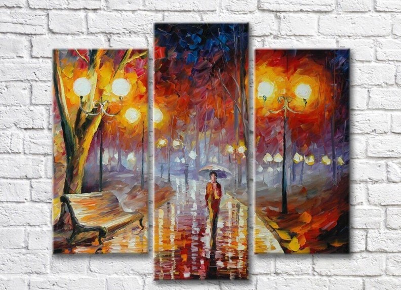 Pictură Rainbow Park alley lit by lanterns on a rainy day (35110191)