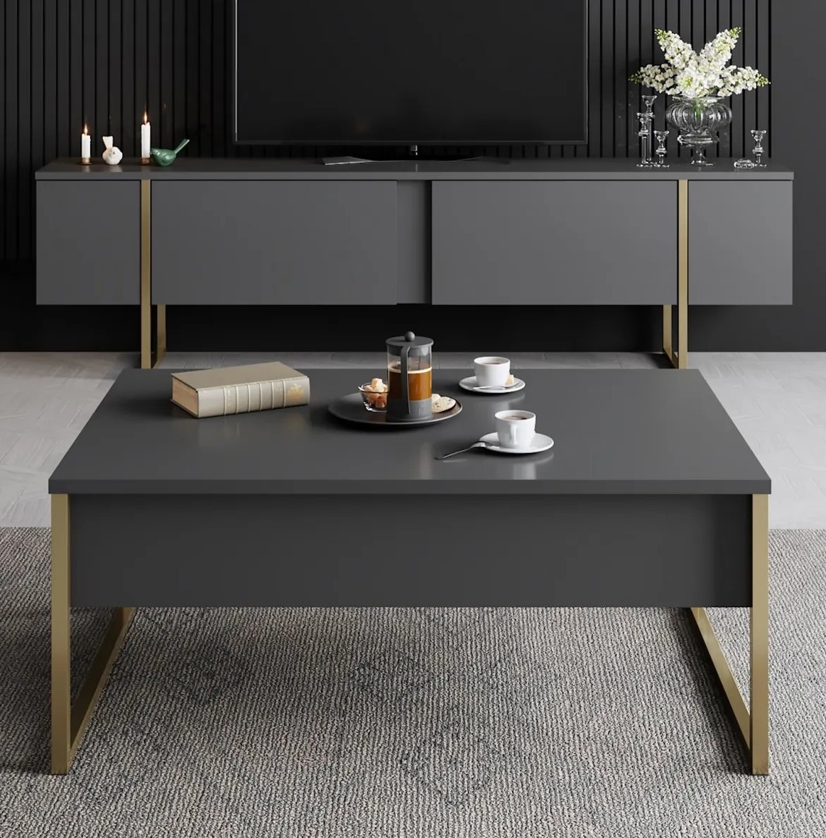 Măsuţă cafea Trendy Lux Anthracit/Gold 90x40x60cm GTR000551