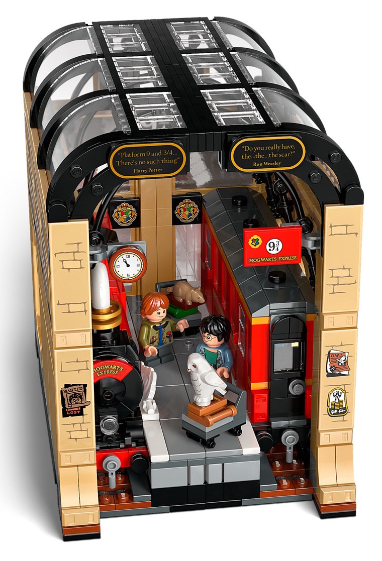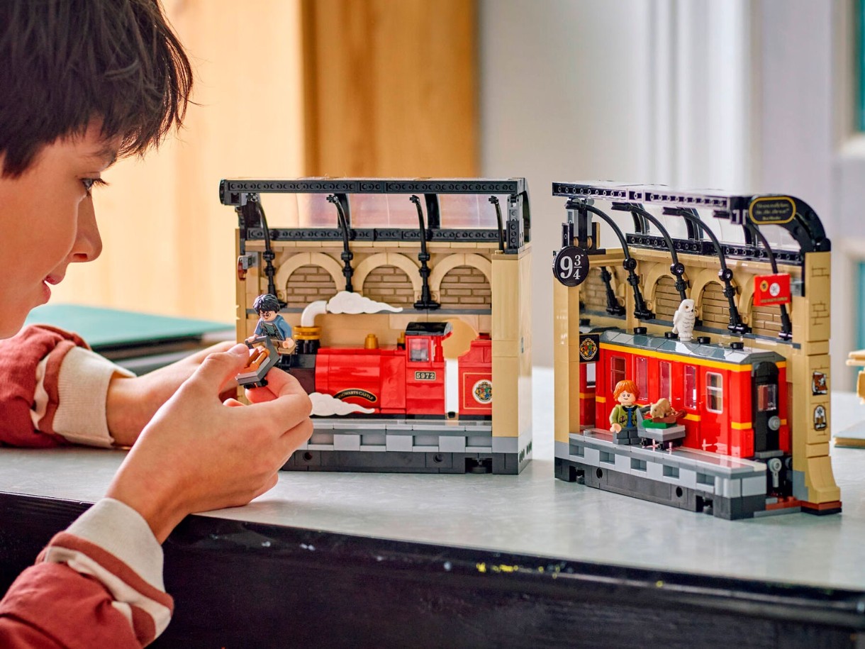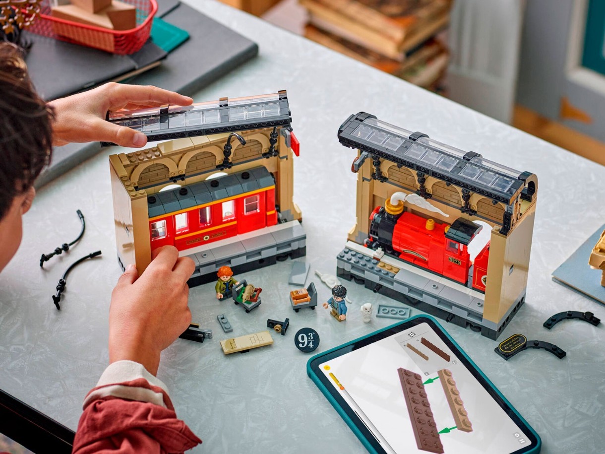 Adu magia pe rafturile de cărți ale copiilor cu primul colț de cărți LEGO® Harry Potter™ (76450), care include o secțiune construibilă Hogwarts Express™. Este o modalitate creativă de a crea un spațiu de expunere fermecător pentru cărți. Această jucărie magică permite copiilor să recreeze scene emblematice de pe Peroanele 9½™ ale trenului King’s Cross cu minifigurinele Harry Potter și Ron Weasley™ și animalele lor de companie Hedwig™ și Crake™ LEGO. Modelul de tren prezintă o locomotivă și un vagon detaliate, cu laterale decupate pentru accesul minifigurinelor, iar oglinzile de la un capăt al vagonului creează iluzia unui tren lung.