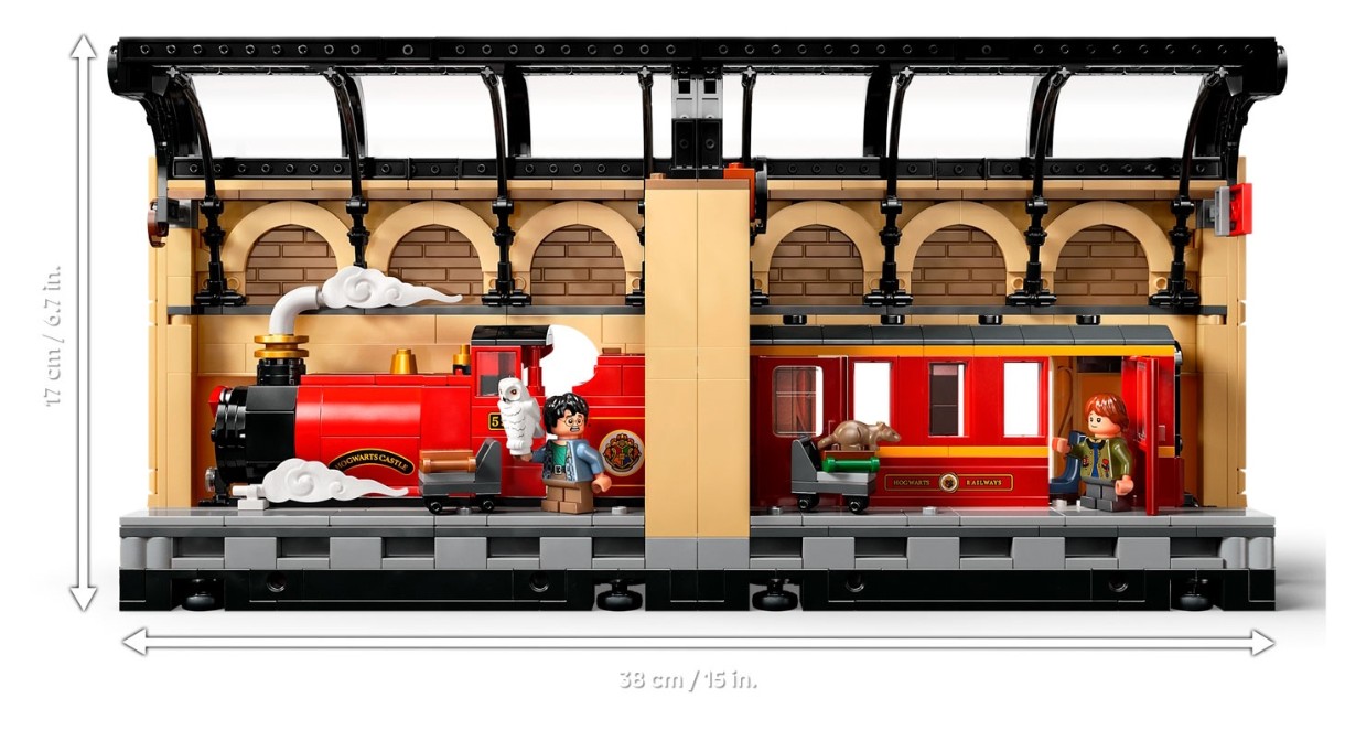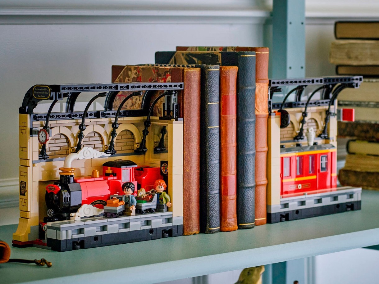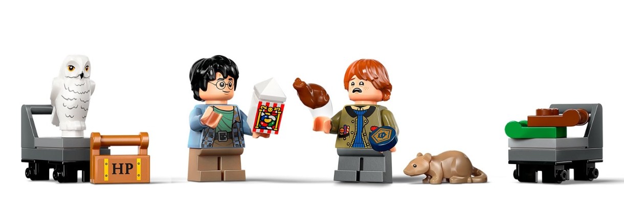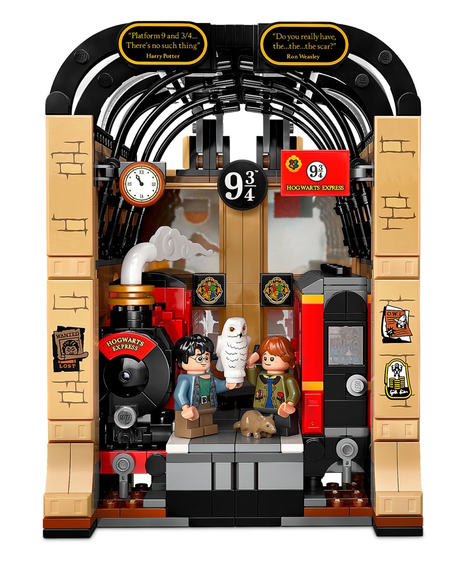 Adu magia pe rafturile de cărți ale copiilor cu primul colț de cărți LEGO® Harry Potter™ (76450), care include o secțiune construibilă Hogwarts Express™. Este o modalitate creativă de a crea un spațiu de expunere fermecător pentru cărți. Această jucărie magică permite copiilor să recreeze scene emblematice de pe Peroanele 9½™ ale trenului King’s Cross cu minifigurinele Harry Potter și Ron Weasley™ și animalele lor de companie Hedwig™ și Crake™ LEGO. Modelul de tren prezintă o locomotivă și un vagon detaliate, cu laterale decupate pentru accesul minifigurinelor, iar oglinzile de la un capăt al vagonului creează iluzia unui tren lung.