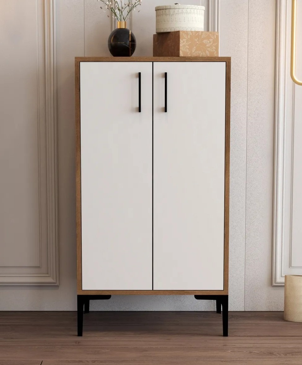 Cu o grosime de 18 mm, dulapul de pantofi este construit să reziste. Picioarele, mânerele și cuierul din metal adaugă un aspect modern și industrial, ridicând estetica spațiului. Numeroasele rafturi oferă spațiu generos pentru organizarea pantofilor și accesoriilor.