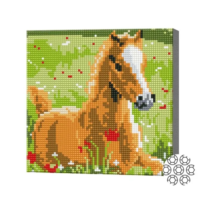 Pictura cu diamante după numere Art Gallery Premium Horse in poppies 20x20cm (BJ1043)