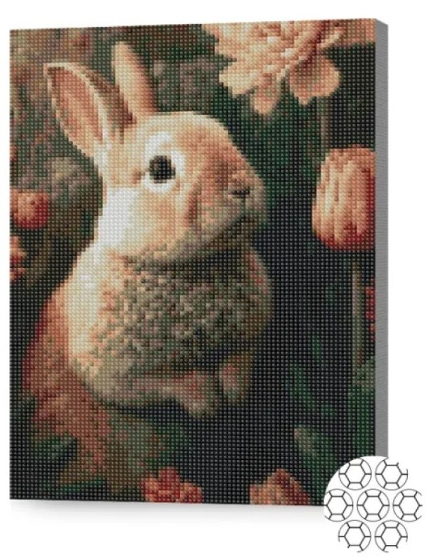 Pictura cu diamante după numere Art Gallery Premium Iepuraș și flori 30x40cm (XQB77186)