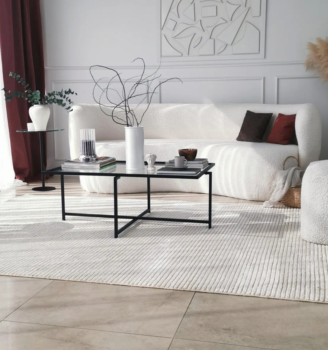 Realizată cu precizie, măsuța are un blat din sticlă temperată, combinând rezistența cu aspectul estetic. Picioarele metalice oferă suport stabil și durabil pentru o utilizare pe termen lung.