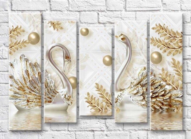 Pictură Rainbow Jewelry swans on a geometric background (3551903)